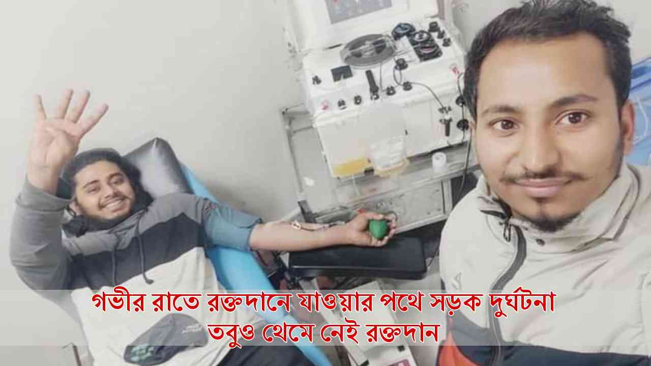 সড়ক দুর্ঘটনায় কবলিত হয়েও থেমে নেই রক্তদান