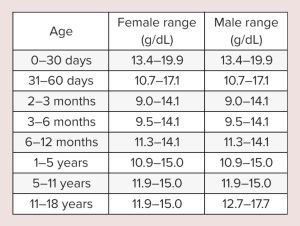 শূন্য থেকে পূর্ণ বয়স ১৮ পর্যন্ত হিমোগ্লোবিনের চার্ট
