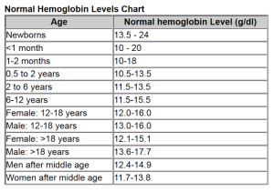 রক্তে হিমোগ্লোবিনের স্বাভাবিক মাত্রা (গড়ে)